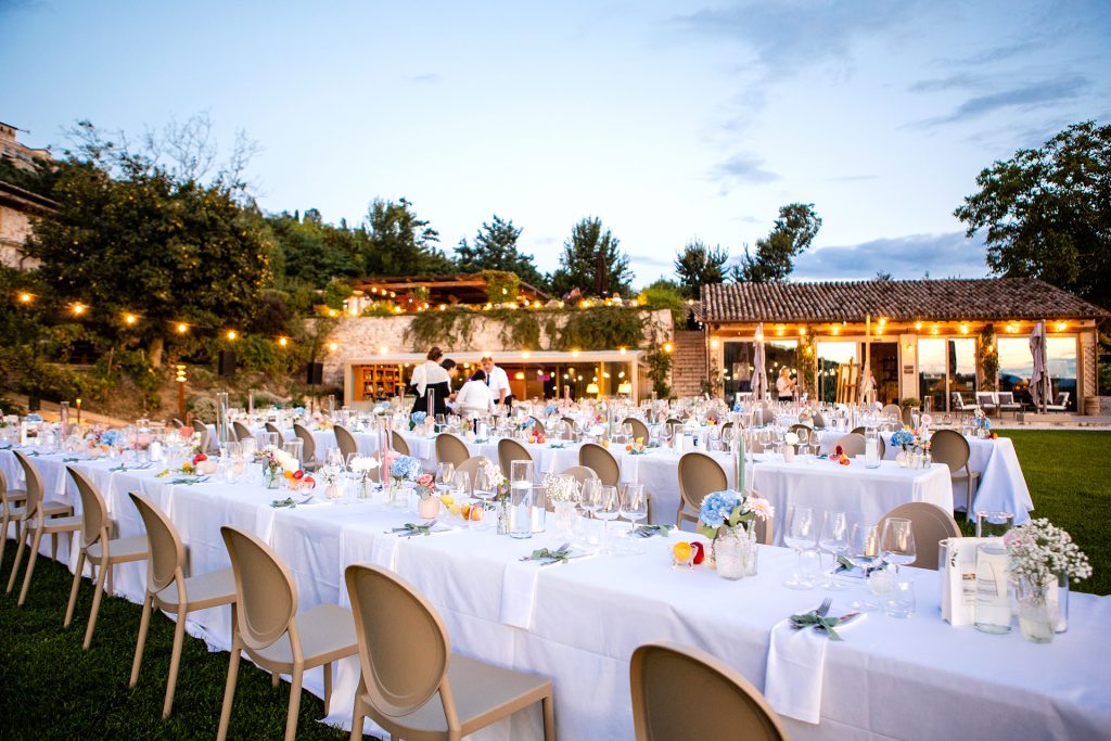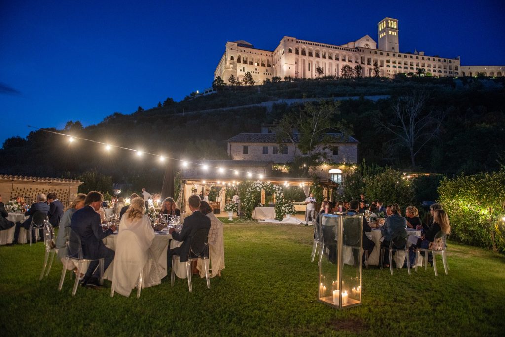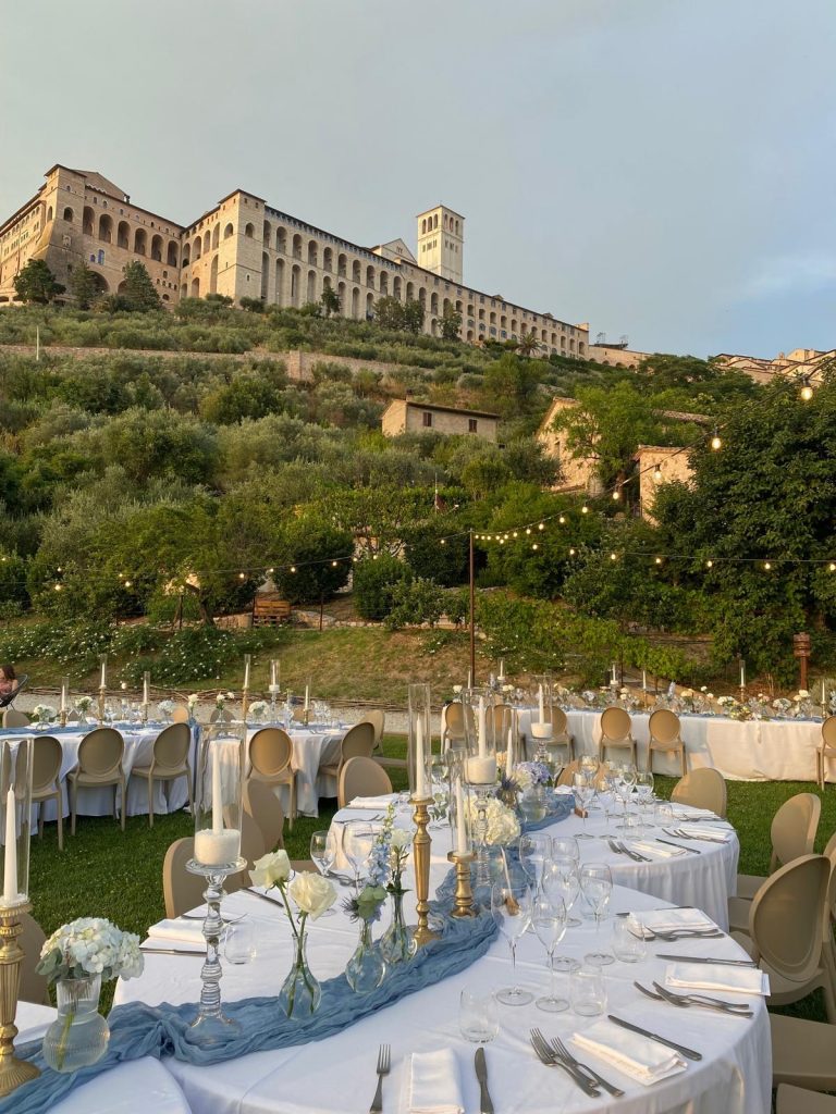 Il Giardino (the garden), overlooked by the Basilica San Francesco, is the most amazing area for al fresco dining under the stars for up to 200 guests. As daylight turns to twilight and nightfall thereafter, the Basilica is lit up as the atmosphere becomes even more magical for you and your wedding guests. Enjoy the gardens in their natural glory or opt for the use of a clear span marquee, ideal for any weather eventuality. The bonus of a clear span marquee with a clear roof covering at Borgo Antichi Orti, is that you will still benefit from the amazing views of the Basilica San Francesco, as well as the terraced gardens of the borgo and the countryside of Umbria beyond.
